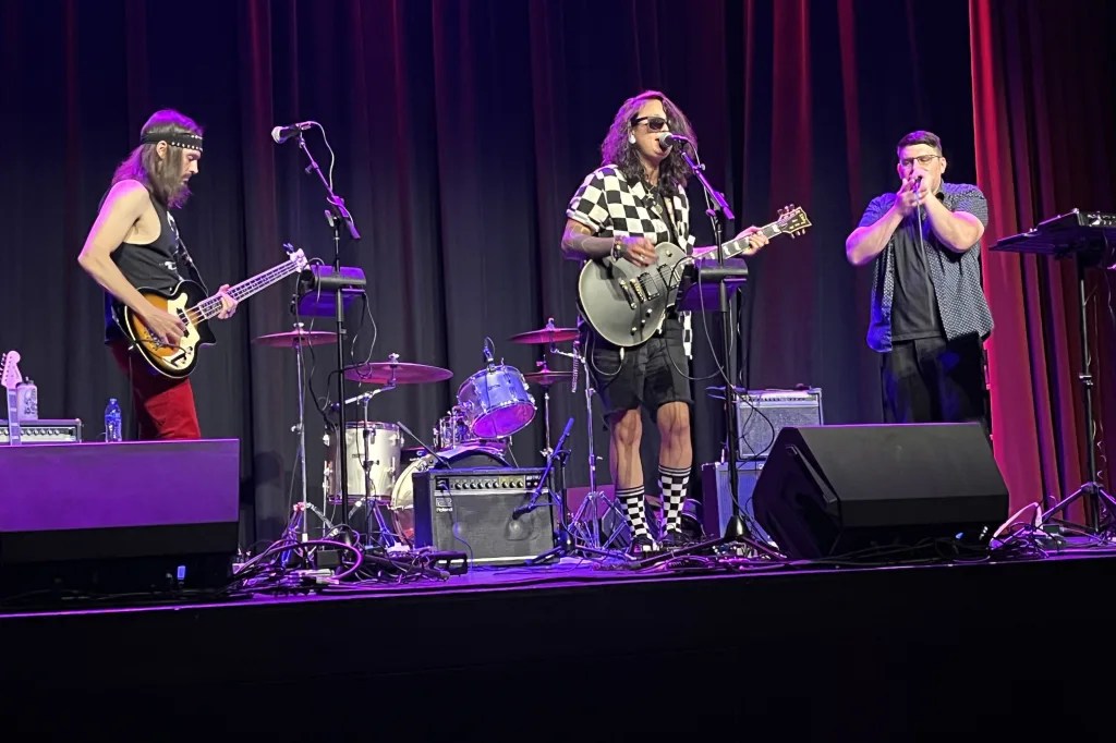 Le Ghast is a trailblazing trio that seamlessly blends moody atmospheres with infectious grooves, creating a sound that is both hauntingly unique and undeniably captivating. With a signature style that has been dubbed “Prom Rock,” their music evokes the sensation of being lost in a moment—a lone dancer under a disco ball, swept up in dreamy, otherworldly vibes.